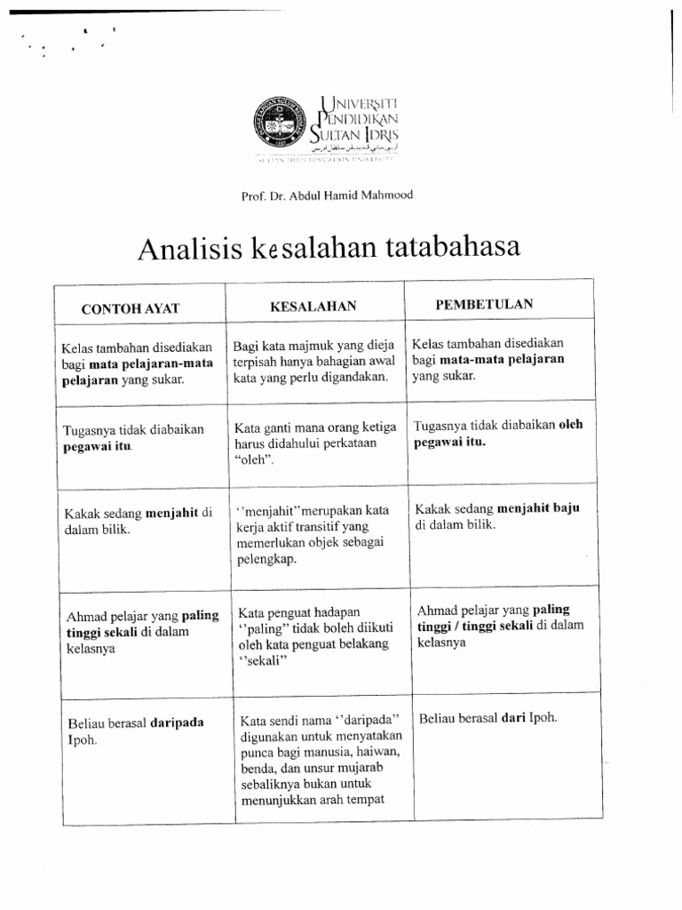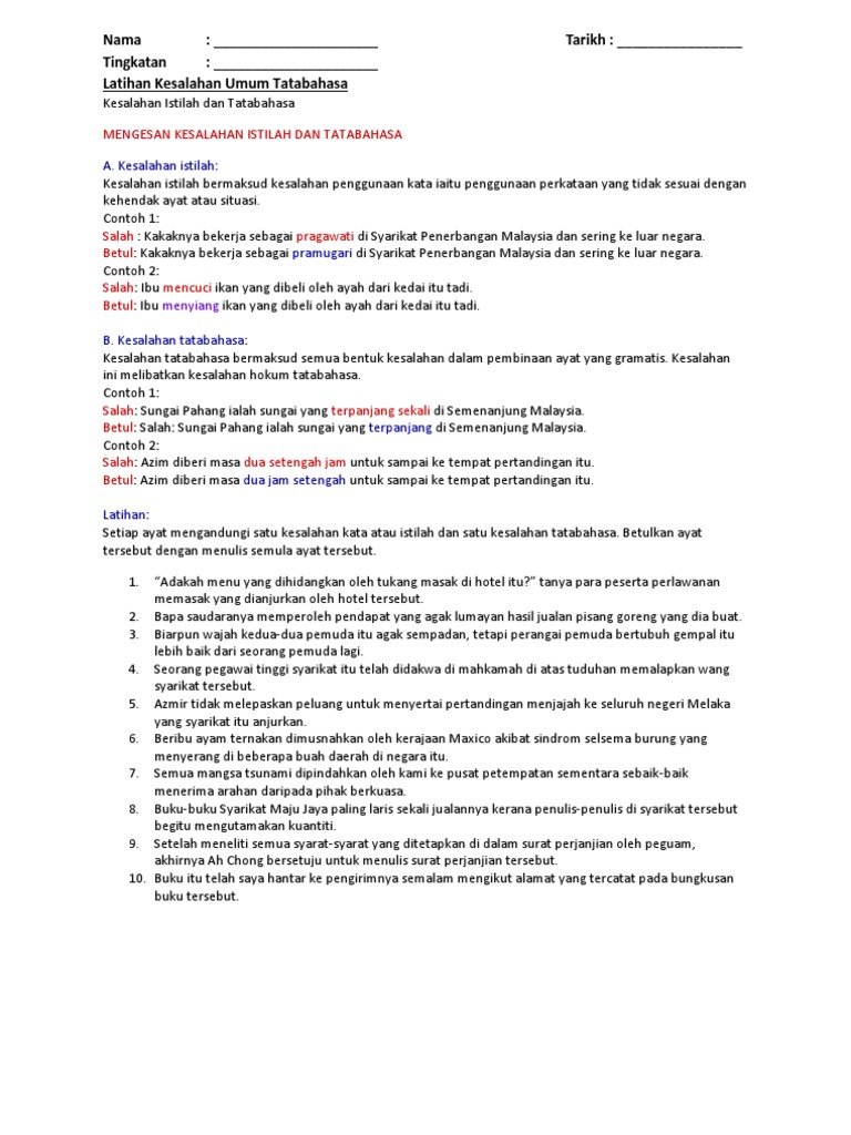 Uu apa saja yang sebagai contoh di kota jakarta misalnya, perubahan peruntukan kawasan hunian menjadi. Perkara yang diterangkan mesti mendahului penerang. Sebagaimana struktur tata bahasa yang tepat, tanda garis hubung paling sering digunakan pada kata berulang. Berikut daftar kesalahan tata bahasa dalam bahasa inggris. Analisis kesalahan tata bahasa, teks report contoh laporan analisis kesalahan bahasa indonesia. Setiap saat bahasa selalu berkembang maka akan selalu terjadi perubahan struktur bahasa, untuk itu tata bahasa normatif. Contoh laporan analisis kesalahan bahasa indonesia. Mengapa guru perlu menggunakan media pengajaran? Definisi kesalahan tata bahasa dalam bahasa rusia, contoh, jenis, kesalahan paling umum, mengapa kesalahan tersebut dibuat dan bagaimana cara menghindarinya. Lihatlah contoh kesalahan dan pembetulan yang berikut 9 penggunaan kata yang tidak tepat. Kesalahan berbahasa di dalam pembelajaran bahasa merupakan suatu hal yang tidak bisa dihindari. Berikut kesalahan tata bahasa inggris yang sering digunakan oleh orang indonesia. Kesalahan tata bahasa membuat orang bahkan melek.