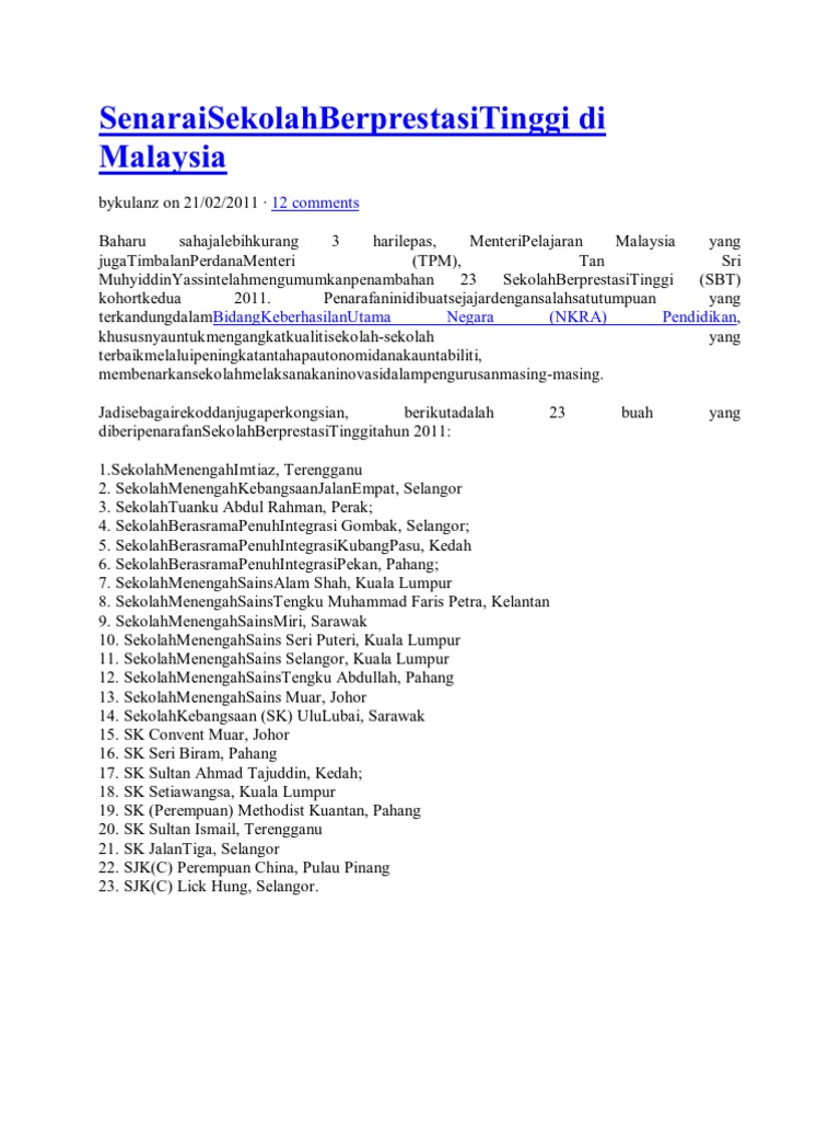 Senarai Sekolah Berprestasi Tinggi - Tugasan Kumpulan Group 10 Studocu : Sekolah ini mempunyai tradisi budaya kerja yang sangat tinggi dan cemerlang dengan modal insan nasional.. Kebanyakan sekolah sbp premier sentiasa berada dalam kategori sekolah berprestasi tinggi. Senarai sekolah berprestasi tinggi malaysia yang sentiasa menjadi pilihan dan rebutan pelajar. Berikut dikongsikan senarai sekolah berprestasi tinggi atau ringkasnya sbt di malaysia. Sekolah berasrama penuh integrasi gombak, selangor 3. For faster navigation, this iframe is preloading the wikiwand page for sekolah berprestasi tinggi.