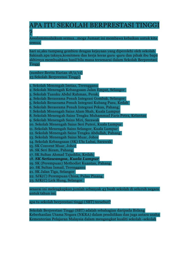 Majlis yang sungguh bermakna ini telah dijayakan oleh kumpulan ibu bapa pelajar spm 2020. Panduan malaysia maklumat terkini senarai terkini sekolah berprestasi tinggi. Sk tepus, dungun, terengganu 2. Sbt ditakrifkan sebagai sekolah yang mempunyai watak, identiti yang tersendiri dan unik. Savesave senarai sekolah berprestasi tinggi di malaysia for later.